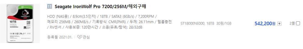18TB 하드디스크의 경우 저렴한 해외구매도 542,200원으로 10개사면 5,422,000원인데, 가격적인 면에서 분명히 장점이 있는것 같습니다.