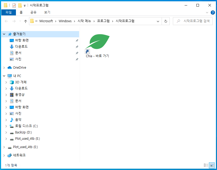 여기 폴더에 치아코인 채굴 프로그램 시작 아이콘을 넣어주면 됩니다.