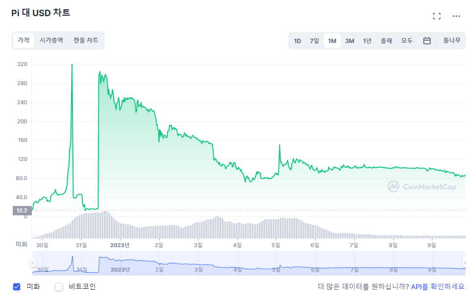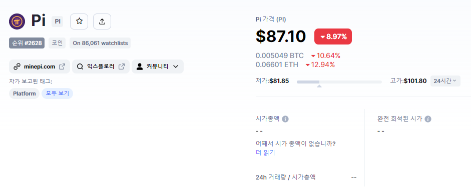 코인마캣에서 파이코인 가격이 87.1달러입니다.