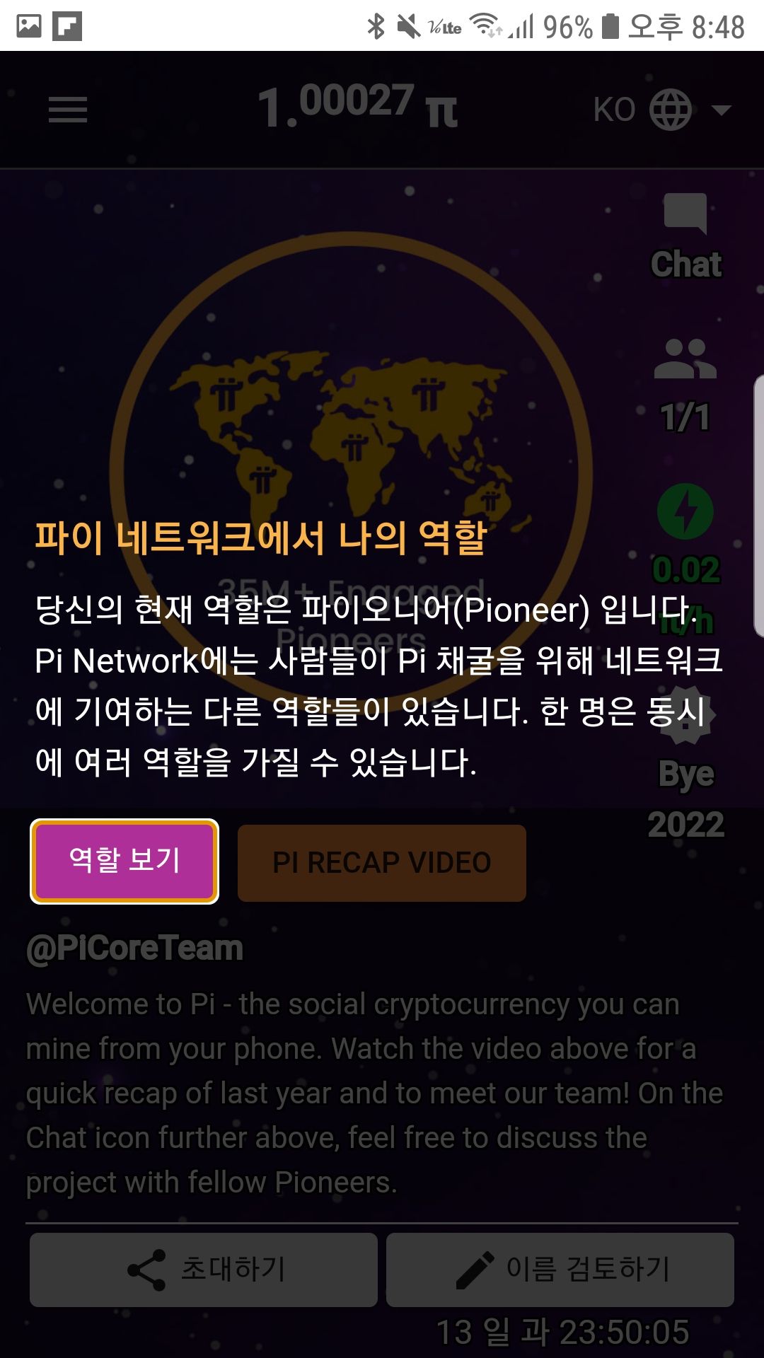 13. 파이 네트워크에서 나의 역할은 파이오니어(Pioneer)입니다.