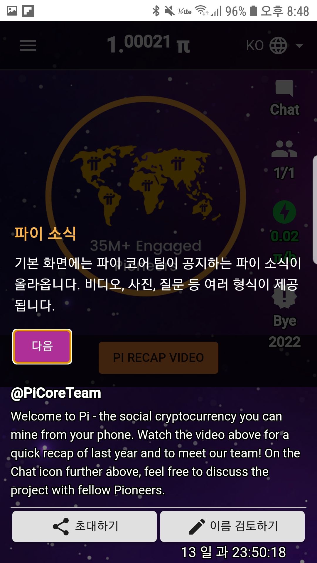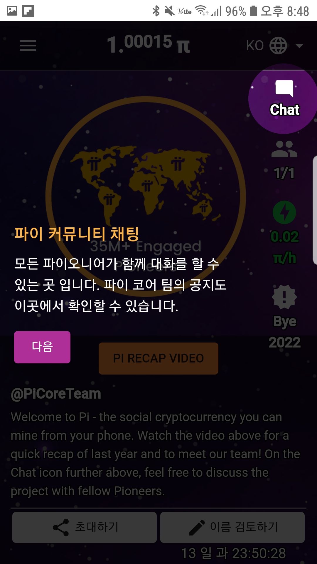 추천인을 입력하면 파이코인 1개를 얻을 수 있다고 해서 인터넷에서 추천인 코드를 찾다가 깜빡하고 화면캡쳐를 못했네요.