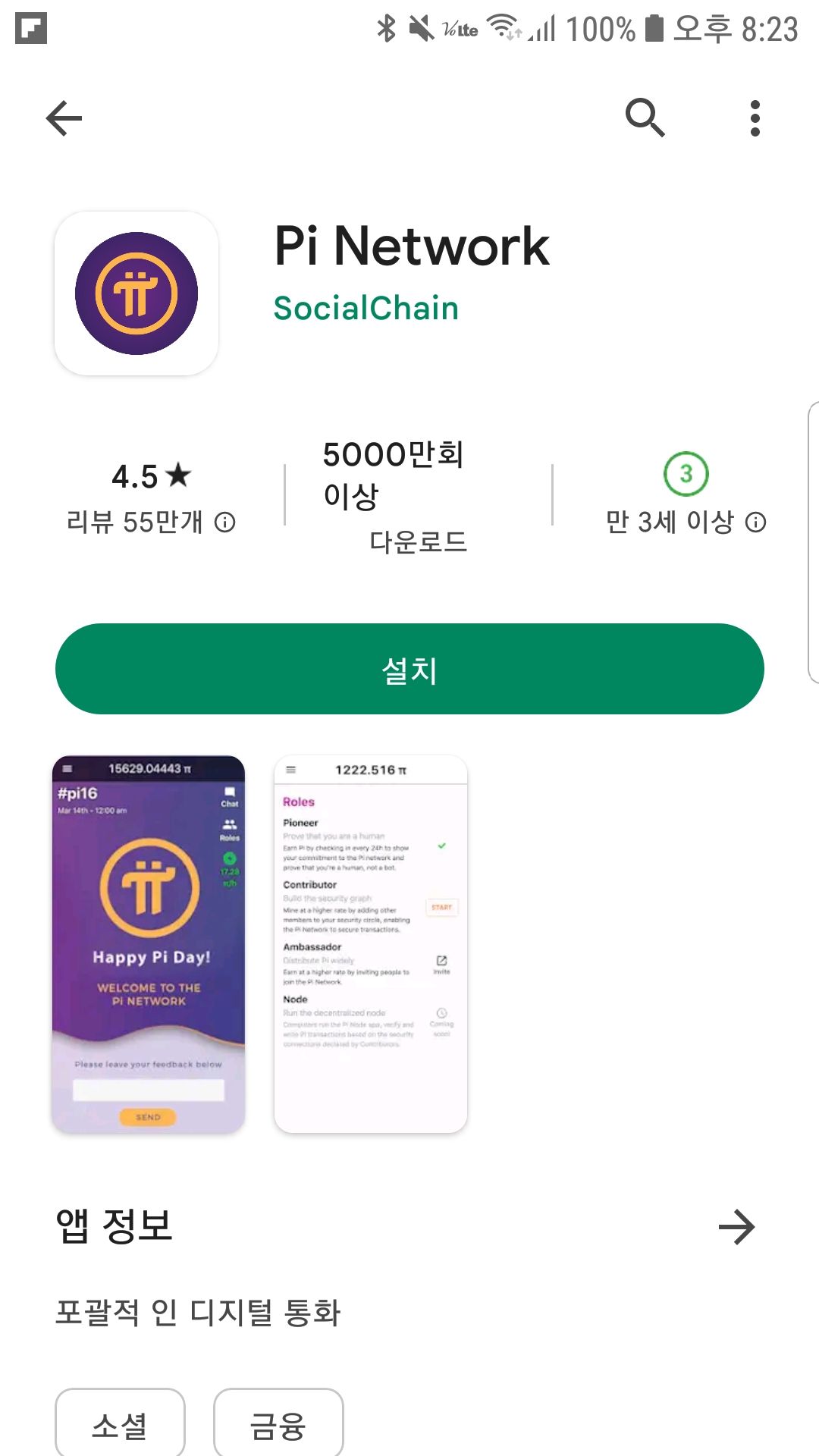 1. 플레이스토어에서 파이코인이라고 검색을 하면 "Pi Network"이라는 앱이 나오는데, Pi Network 앱을 설치해 줍니다.