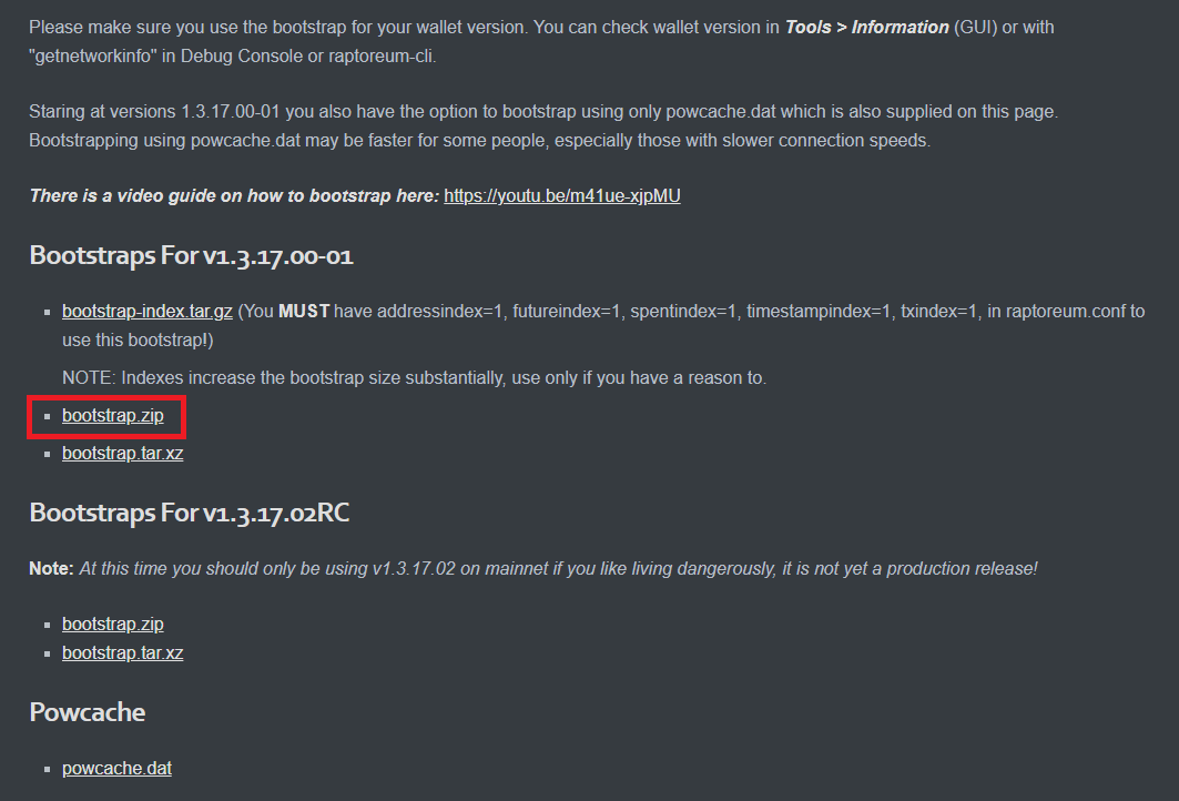 Powcache & Bootstrap | Raptoreum Documentation