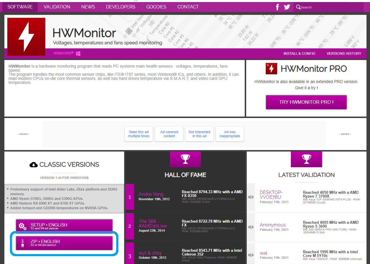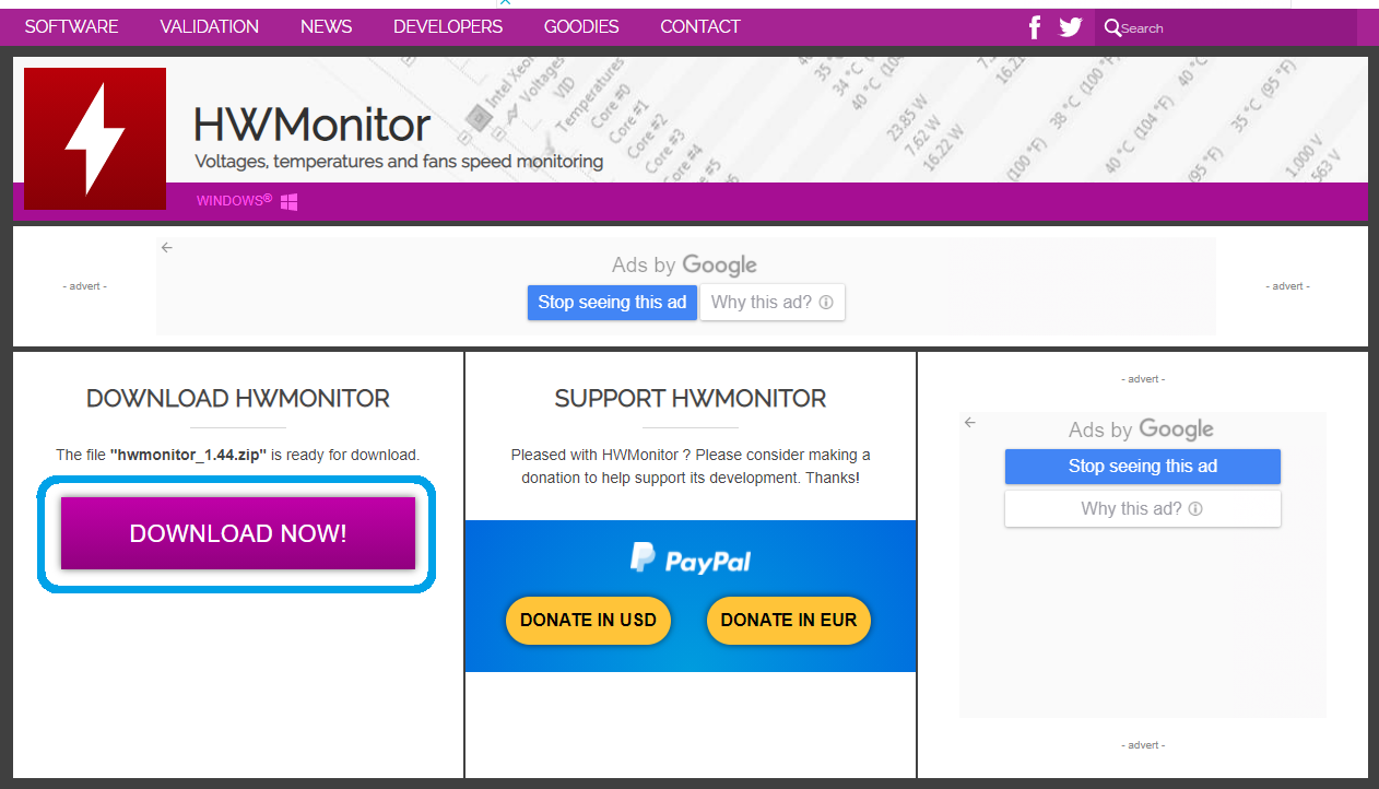 HWMonitor is a hardware monitoring program that reads PC systems main health sensors : voltages, temperatures, fans speed. The program handles the most common sensor chips, like ITE® IT87 series, most Winbond® ICs, and others. In addition, it can read mo