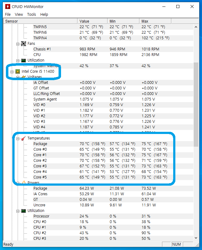 보통은 그래픽카드로 채굴을 많이 하기 때문에 GPU 온도측정에 더 관심이 있겠지요.